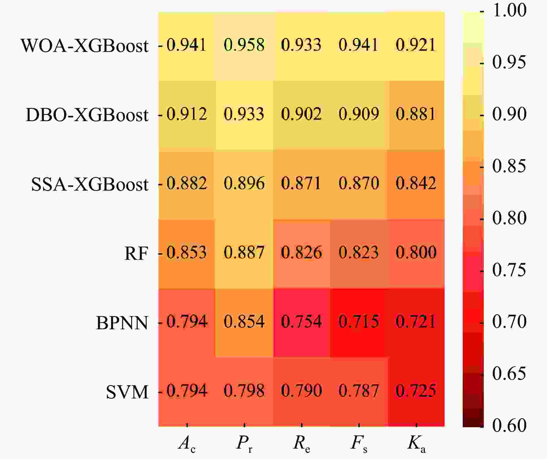 0.7325 时效果最佳;基于WOA-XGBoost岩爆烈度等级预测模型得到的结果与实际等级的拟合度优于传统智能算法模型;通过将WOA-XGBoost模型应用于工程实践中,验证了该模型预测岩爆烈度等级具有较高的准确度和可靠性。-