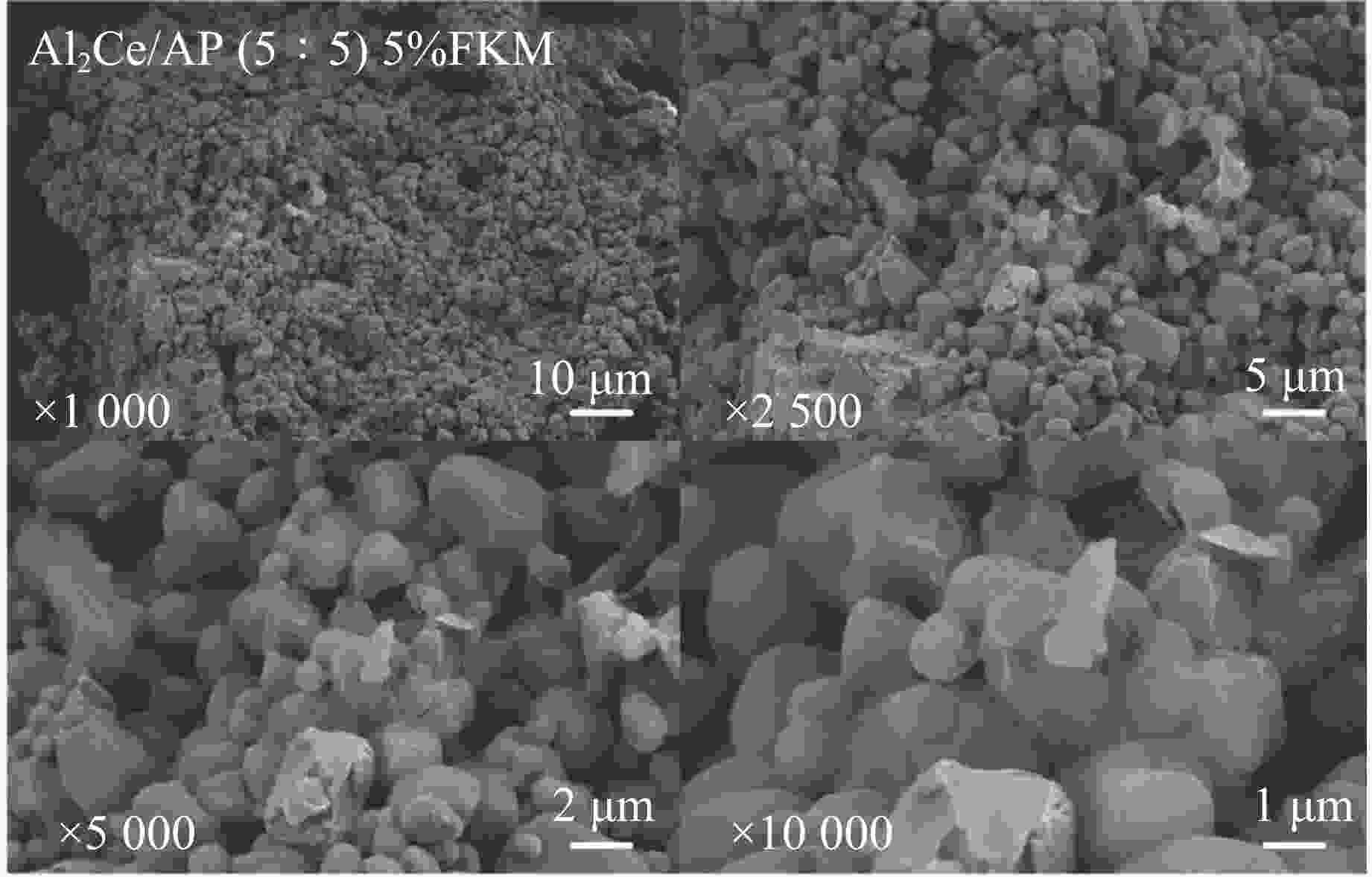 Reagent name Purity Source NH4ClO4 Industrial grade Beifang Xing’an Chemical Co., Ltd. Polytetrafluoroethylene Analytical grade Aladdin Fluor rubber Industrial grade Zhonghao Chenguang Research Institute Co., Ltd. Petroleum ether Analytical grade Sinopharm Chemical Reagent Co., Ltd. Ethyl acetate Analytical grade Sinopharm Chemical Reagent Co., Ltd. 表 4 Al/AP(7%氟橡胶)、Al/PTFE、Al2Ce/AP(5%氟橡胶)和Al2Ce/PTFE体系的强度和临界失效应变