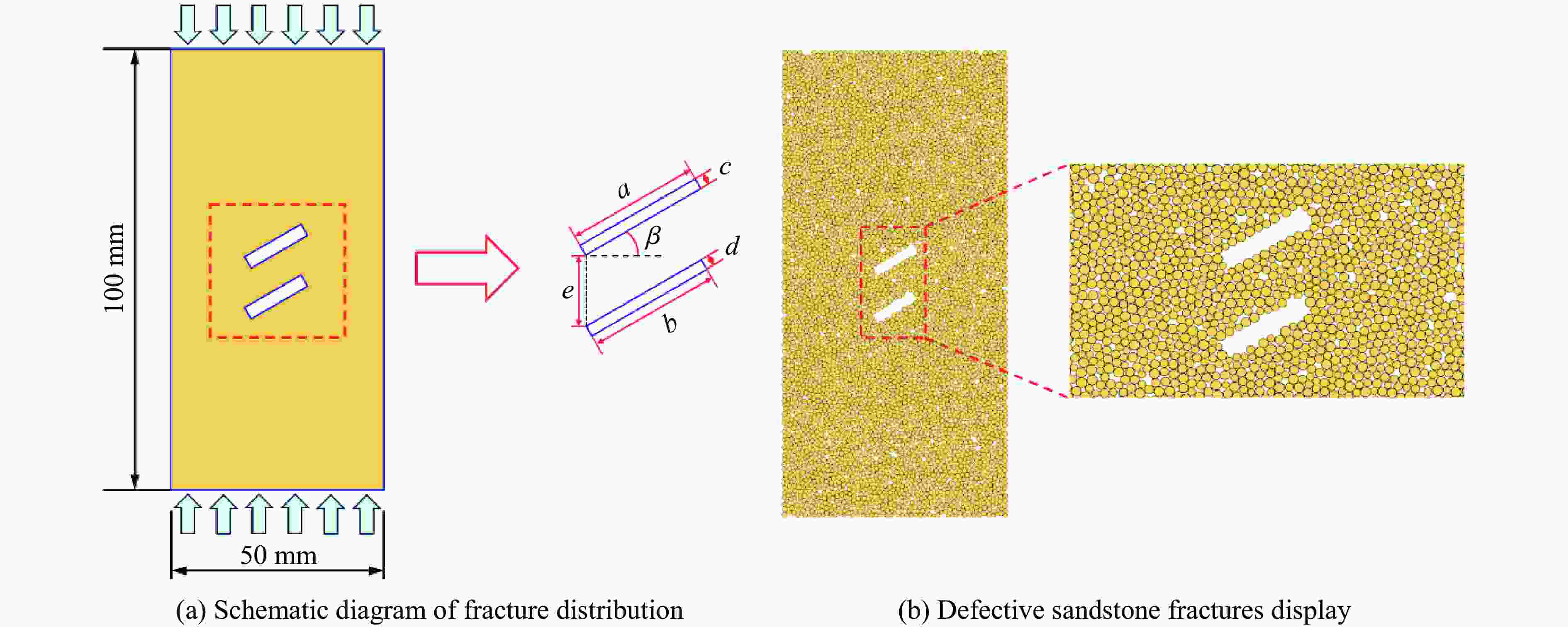 Specimen No. e/mm β/(°) Specimen No. e/mm β/(°) Specimen No. e/mm β/(°) 10-0 10 0 20-0 20 0 30-0 30 0 10-30 10 30 20-30 20 30 30-30 30 30 10-45 10 45 20-45 20 45 30-45 30 45 10-60 10 60 20-60 20 60 30-60 30 60 10-90 10 90 20-90 20 90 30-90 30 90 表 4 含缺陷砂岩的力学参数