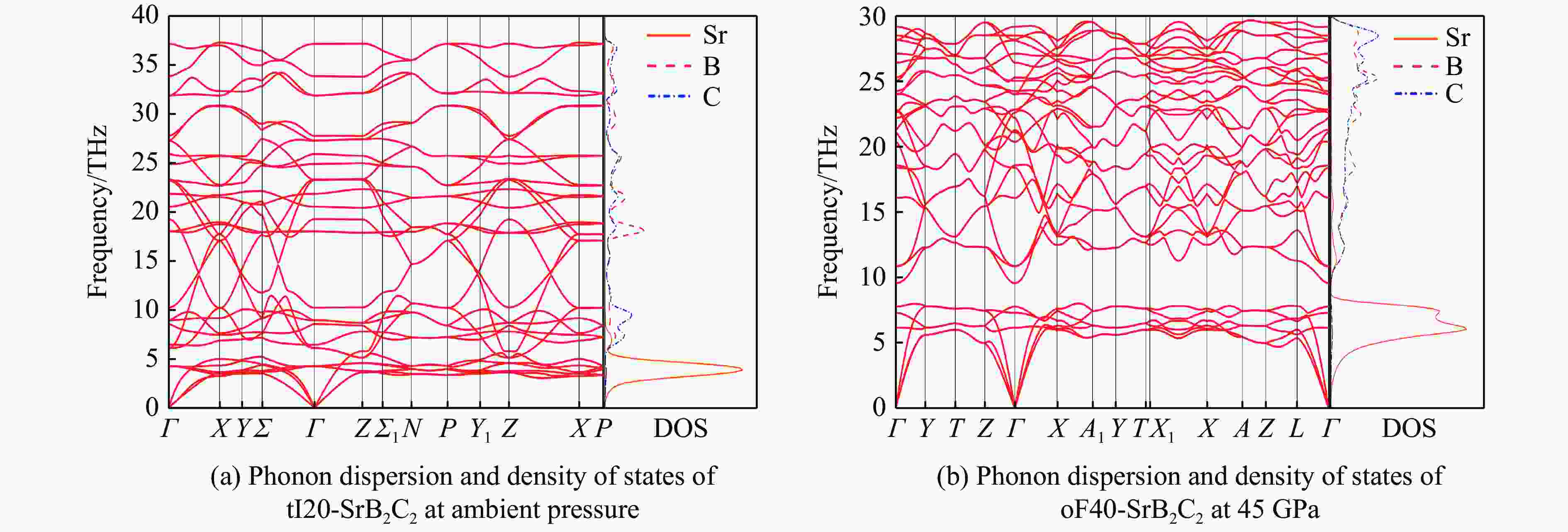 Table 2. Independent elastic constants, bulk modulus, Young’s modulus, shear modulus and Poisson’s ratio of tI20-SrB2C2 at ambient pressure and oF40-SrB2C2 at 45 GPa