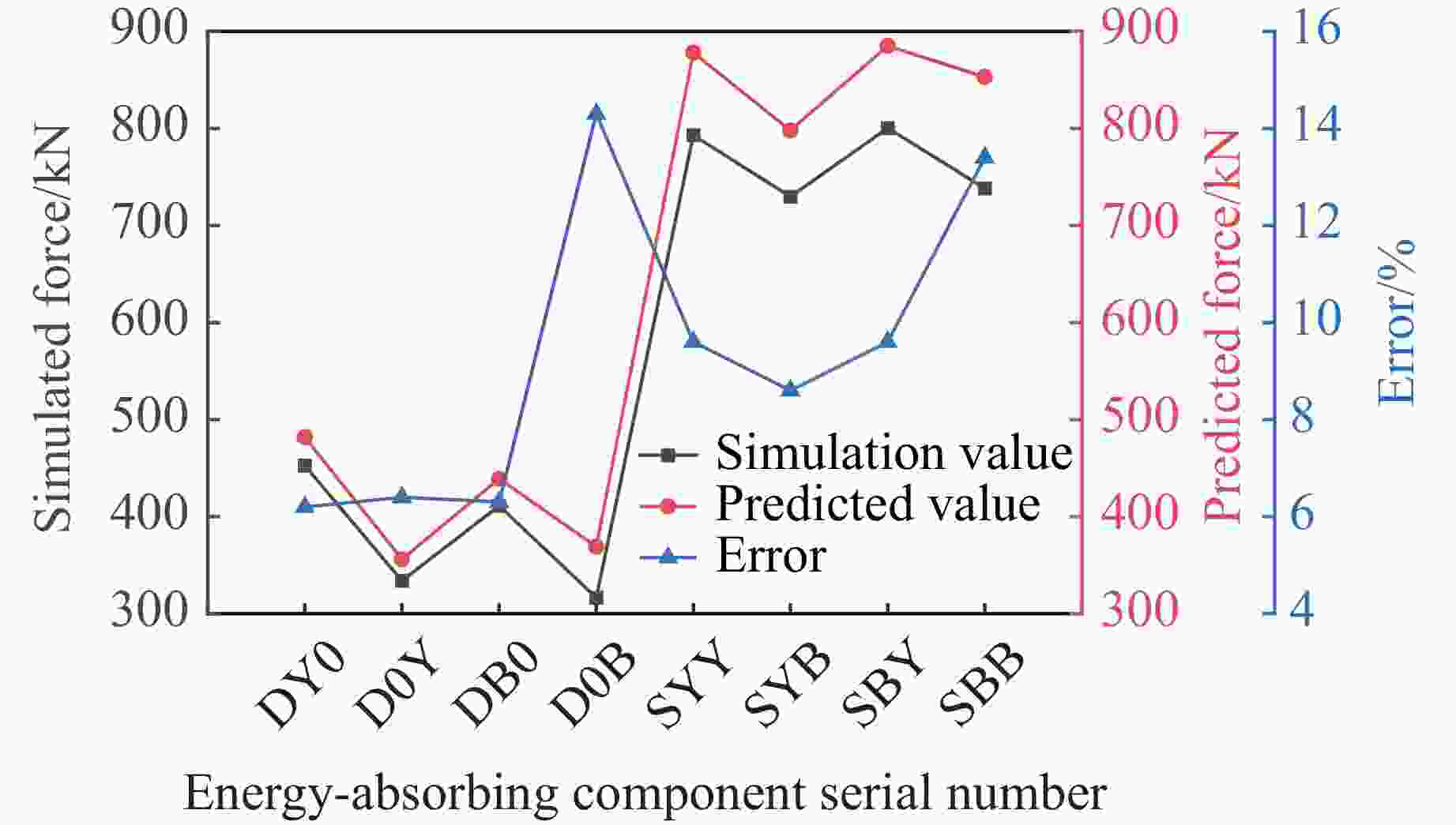 No. H/mm Di,t/mm Do,t/mm t/mm Rp/mm Np θb/(º) Lr/mm Di,b/mm Do,b/mm h/mm DY0 200 140 4 25 10 130 180 210 D0Y 200 170 4 25 10 130 180 210 DB0 200 140 4 6 32 25 10 130 180 210 D0B 200 170 4 6 32 25 10 130 180 210 SYY 200 140 170 4 25 10 130 180 210 SYB 200 140 170 4 6 32 25 10 130 180 210 SBY 200 140 170 4 6 32 25 10 130 180 210 SBB 200 140 170 4 6 32 25 10 130 180 210 ρ/(kg·m−3) E/GPa $\nu $ A0/MPa B0/MPa C n m $ \dot{{\varepsilon }}_{0}$/s−1 7 800 210 0.3 507 320 0.064 0.28 1.06 1 表 3 吸能构件结构参数设置