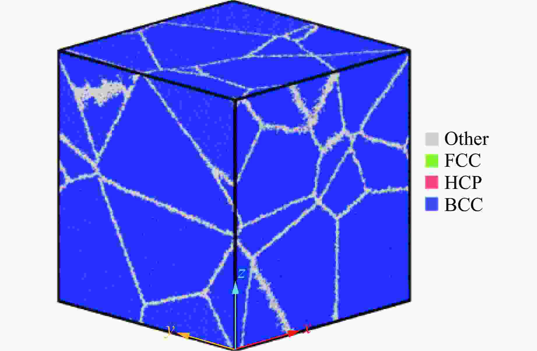 [1] 周鑫. 塑性变形制备纳米金属材料的稳定性研究 [D]. 合肥: 中国科学技术大学, 2019.ZHOU X. Stability of nanograined metals prepared by using plastic deformation [D]. Hefei: University of Science and Technology of China, 2019. [2] AIFANTIS K E, KONSTANTINIDIS A A. Hall-Petch revisited at the nanoscale [J]. Materials Science and Engineering: B, 2009, 163(3): 139–144. doi: 10.1016/j.mseb.2009.05.010 [3] JEON J B, LEE B J, CHANG Y W. Molecular dynamics simulation study of the effect of grain size on the deformation behavior of nanocrystalline body-centered cubic iron [J]. Scripta Materialia, 2011, 64(6): 494–497. doi: 10.1016/j.scriptamat.2010.11.019 [4] YUAN F P. Atomistic simulation study of tensile deformation in bulk nanocrystalline bcc iron [J]. Science China Physics, Mechanics and Astronomy, 2012, 55(9): 1657–1663. doi: 10.1007/s11433-012-4830-6 [5] DUNGRIYAL P, SINGH S P, PRASAD R. Grain size dependency, plasticity and dynamic property evaluation for nano-crystalline BCC-Fe using molecular dynamic simulations [J]. Procedia Engineering, 2017, 173: 1975–1982. doi: 10.1016/j.proeng.2017.02.458 [6] ZHOU X Y, YANG X S, ZHU J H, et al. Atomistic simulation study of the grain-size effect on hydrogen embrittlement of nanograined Fe [J]. International Journal of Hydrogen Energy, 2020, 45(4): 3294–3306. doi: 10.1016/j.ijhydene.2019.11.131 [7] HAN Q F, YI X. High pressure-induced elimination of grain size softening in nanocrystalline metals: grain boundary strengthening overwhelming reduction of intragranular dislocation storage ability [J]. International Journal of Plasticity, 2022, 153: 103261. doi: 10.1016/j.ijplas.2022.103261 [8] BANCROFT D, PETERSON E L, MINSHALL S. Polymorphism of iron at high pressure [J]. Journal of Applied Physics, 1956, 27(3): 291–298. doi: 10.1063/1.1722359 [9] JAMIESON J C, LAWSON A W. X-ray diffraction studies in the 100 kilobar pressure range [J]. Journal of Applied Physics, 1962, 33(3): 776–780. doi: 10.1063/1.1777167 [10] KADAU K, GERMANN T C, LOMDAHL P S, et al. Atomistic simulations of shock-induced transformations and their orientation dependence in bcc Fe single crystals [J]. Physical Review B, 2005, 72(6): 064120. doi: 10.1103/PhysRevB.72.064120 [11] KALANTAR D H, BELAK J F, COLLINS G W, et al. Direct observation of the α-ε transition in shock-compressed iron via nanosecond X-ray diffraction [J]. Physical Review Letters, 2005, 95(7): 075502. doi: 10.1103/PhysRevLett.95.075502 [12] YU J M, SHAO J L, SHU H, et al. Deformation and reverse phase transformation mechanism of high-pressure HCP iron during unloading process [J]. Journal of Applied Physics, 2025, 137(4): 045103. doi: 10.1063/5.0238871 [13] DEWAELE A, DENOUAL C, ANZELLINI S, et al. Mechanism of the α-ε phase transformation in iron [J]. Physical Review B, 2015, 91(17): 174105. doi: 10.1103/PHYSREVB.91.174105 [14] PANG W W, ZHANG P, ZHANG G C, et al. Morphology and growth speed of hcp domains during shock-induced phase transition in iron [J]. Scientific Reports, 2014, 4: 3628. doi: 10.1038/srep03628 [15] POGORELKO V V, MAYER A E. Dynamic tensile fracture of iron: molecular dynamics simulations and micromechanical model based on dislocation plasticity [J]. International Journal of Plasticity, 2023, 167: 103678. doi: 10.1016/j.ijplas.2023.103678 [16] GANDHI V, RAVINDRAN S, RAVICHANDRAN G. Dynamic strength of iron at high pressures and strain rates [J]. Physical Review Letters, 2022, 128(1): 015705. doi: 10.1103/PhysRevLett.128.015705 [17] LUU H T, RAVELO R J, RUDOLPH M, et al. Shock-induced plasticity in nanocrystalline iron: large-scale molecular dynamics simulations [J]. Physical Review B, 2020, 102(2): 020102. doi: 10.1103/PhysRevB.102.020102 [18] AMADOU N, DE RESSÉGUIER T. Phase transformations and plasticity in single-crystal iron from shock compression to spall fracture [J]. Physical Review B, 2023, 108(17): 174109. doi: 10.1103/PhysRevB.108.174109 [19] GUAN X R, QU S J, WANG H, et al. Adiabatic shear localization in metallic materials: review [J]. Materials, 2024, 17(21): 5365. doi: 10.3390/ma17215365 [20] JENTZSCH S, STOCK D, HÄCKER R, et al. Shear band formation with split Hopkinson bar experiments [J]. International Journal of Mechanical Sciences, 2024, 284: 109749. doi: 10.1016/j.ijmecsci.2024.109749 [21] YAN N, LI Z Z, XU Y B, et al. Shear localization in metallic materials at high strain rates [J]. Progress in Materials Science, 2021, 119: 100755. doi: 10.1016/j.pmatsci.2020.100755 [22] SHAO J L, WANG P, ZHANG F G, et al. Hcp/fcc nucleation in bcc iron under different anisotropic compressions at high strain rate: molecular dynamics study [J]. Scientific Reports, 2018, 8(1): 7650. doi: 10.1038/s41598-018-25758-1 [23] GAUTIER R, MOMPIOU F, RENK O, et al. Quantifying grain boundary deformation mechanisms in small-grained metals [J]. Nature, 2025, 648(8093): 327–332. doi: 10.1038/s41586-025-09800-7 [24] WU Y C, SHAO J L. Mdapy: a flexible and efficient analysis software for molecular dynamics simulations [J]. Computer Physics Communications, 2023, 290: 108764. doi: 10.1016/j.cpc.2023.108764 [25] GUNKELMANN N, BRINGA E M, TRAMONTINA D R, et al. Shock waves in polycrystalline iron: plasticity and phase transitions [J]. Physical Review B, 2014, 89(14): 140102. doi: 10.1103/PhysRevB.89.140102 [26] HUNTER A, BEYERLEIN I J. Relationship between monolayer stacking faults and twins in nanocrystals [J]. Acta Materialia, 2015, 88: 207–217. doi: 10.1016/j.actamat.2014.12.045 [27] ZHU Y T, LIAO X Z, WU X L. Deformation twinning in nanocrystalline materials [J]. Progress in Materials Science, 2012, 57(1): 1–62. doi: 10.1016/j.pmatsci.2011.05.001 [28] HUSAIN A, LA P Q, HONGZHENG Y, et al. Molecular dynamics as a means to investigate grain size and strain rate effect on plastic deformation of 316L nanocrystalline stainless-steel [J]. Materials, 2020, 13(14): 3223. doi: 10.3390/ma13143223 [29] MCCORMACK S J, WEN W, PERELOMA E V, et al. On the first direct obs